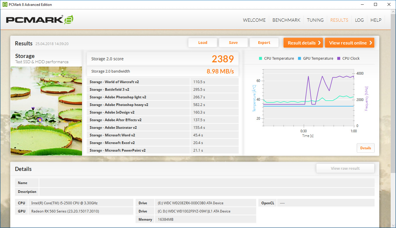 Приложение к обзору жесткого диска Western Digital Se (WD1002F9YZ) на 1 терабайт. Детальные результаты теста Storage в PCMark 8.