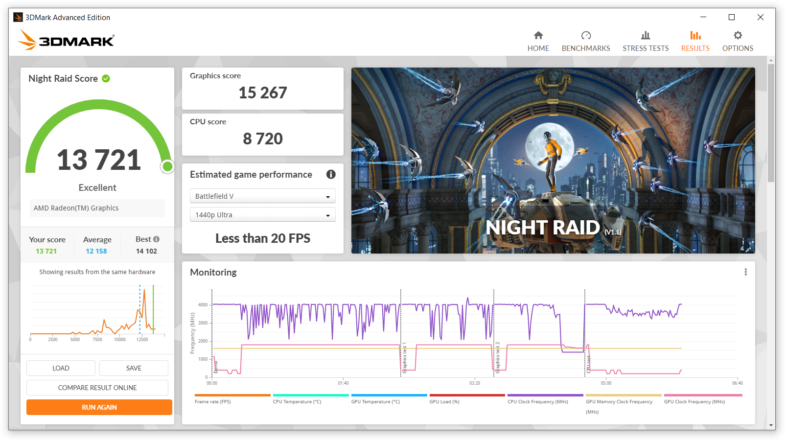 В этой программе я ограничился тестами Fire Strike и Night Raid.