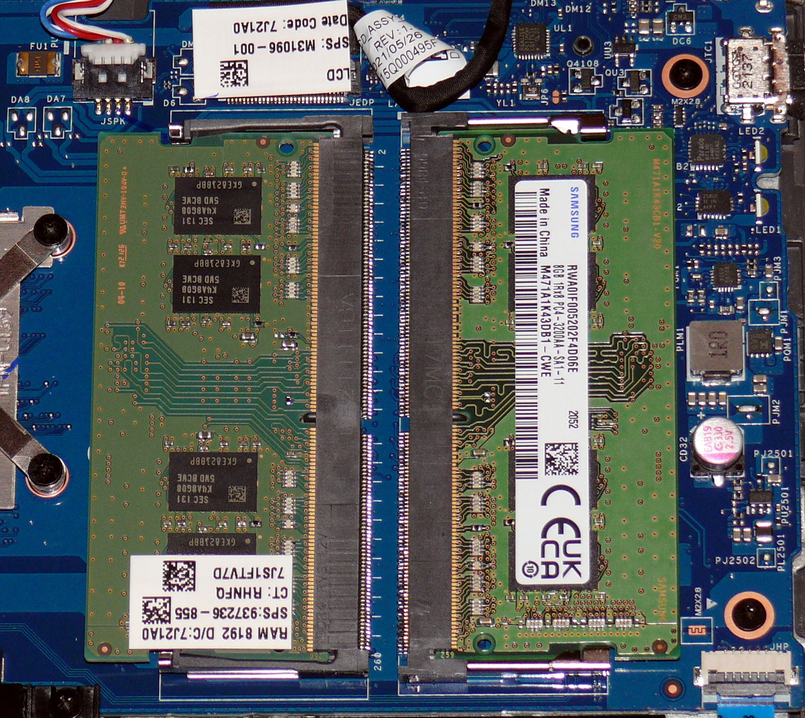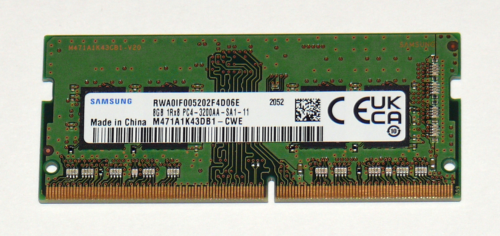 Изначально данный ноутбук оснащался одним модулем памяти на 8 гигабайт. Для 2022 года этого, конечно же, мало. К счастью, была возможность установки второго модуля, что я и проделал в конце сентября. Удалось даже приобрести такой же, какой был установлен - Samsung M471A1K43DB1-CWE (8 гигабайт SODIMM DDR4-3200).